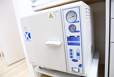使用する器具は、クラスB滅菌器による滅菌で治療の準備をし、治療後は使い捨てにします。また給水管内除菌システムを採用し院内で使用する水も全て除菌します。虫歯や歯周病菌の感染防止を徹底しています。