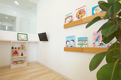 お子様連れの方も安心して通院いただけるよう、絵本やおもちゃのあるキッズスペースを完備しています。またトイレにもベビーシートを設置していますので、おむつ替えも楽にできます。